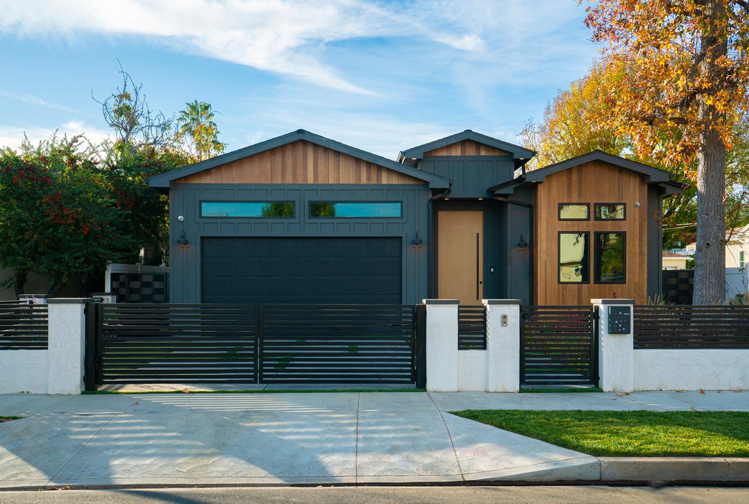 Stunning, new one-story farmhouse with modern flair on a gated lot in the desirable Library Square neighborhood of Sherman Oaks, close to Ventura Blvd. and the Fashion Square. Featuring 4 BR – 4.5 BA in an open floor plan over 2,800 sq. ft., on an over 6,700 sq. ft. lot. Gourmet kitchen features custom cabinetry, stainless-steel appliances, Quartz countertops, center island with bar seating, and dining area with beam design. Family room features custom built-ins and woodwork, fireplace, and sliding glass doors to covered patio. Lush backyard features BBQ area, pool/spa with waterfall, and outdoor pool shower. Master suite features pitched ceiling with beam design, custom accent wall, barn-style doors, master bath with custom tilework, and a spacious walk-in closet. Home is completed by entertainer and designer details, such as custom woodwork and lighting, surround sound speakers, Control 4 smart system, and security system with alarm and cameras.